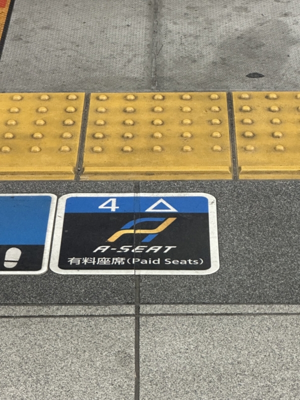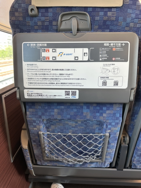 新大阪駅から京都駅までの新快速にはA-SEATという有料座席が指定されていました。