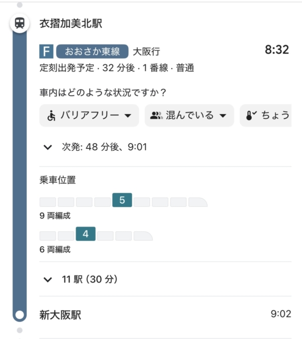 この日乗った新快速は少し混雑していて座れなかったので有料座席を購入しておいてよかったです!