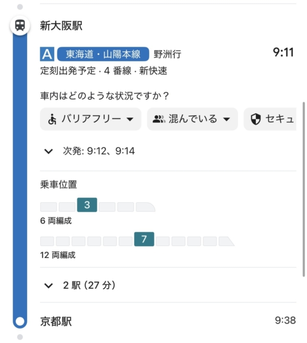 新大阪駅から京都駅までの新快速は有料座席A-SEATで!