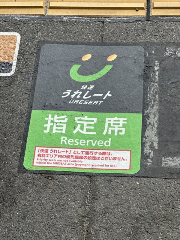 うれしートを予約したので、うれしートの乗車位置で電車を待ちます。