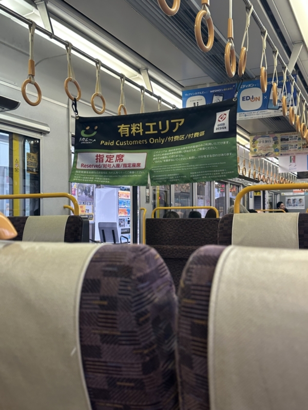 歩き疲れたり、自分へのプチご褒美に在来線の有料座席サービスを使って至福のひと時を過ごしています!