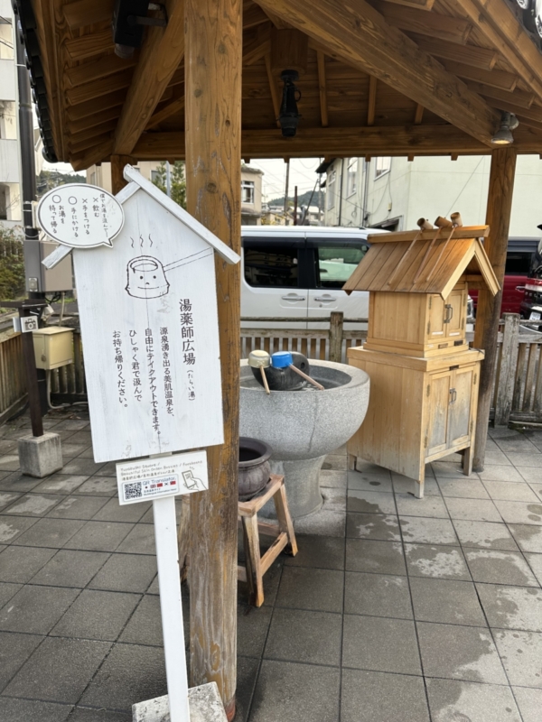 近くに駐車場もある「湯薬師広場たらい湯」です。