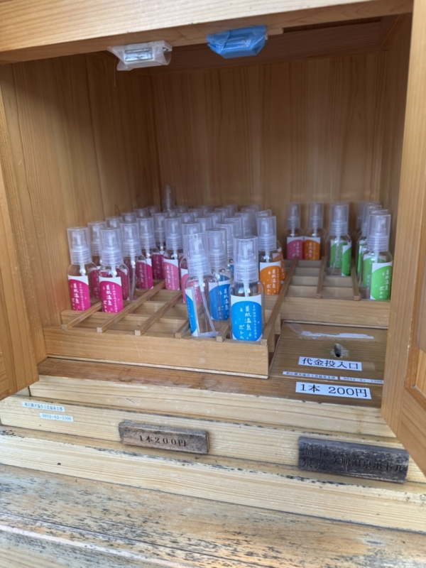 無くても200円でスプレーボトルを購入できるので購入後温泉水を汲むことができます。