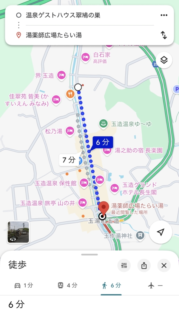 「温泉ゲストハウス翠鳩の巣」から徒歩6分。