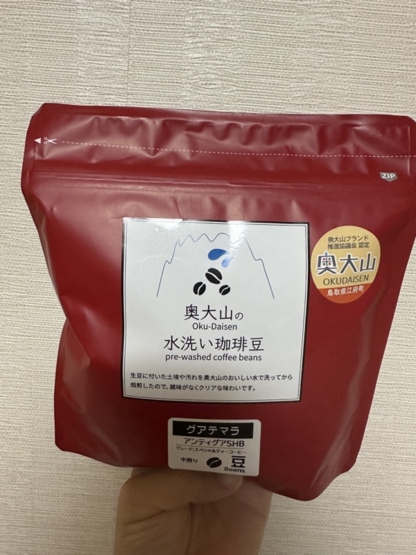 後はコーヒーが好きなので「奥大山の水で洗ったコーヒー豆」も。